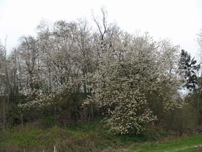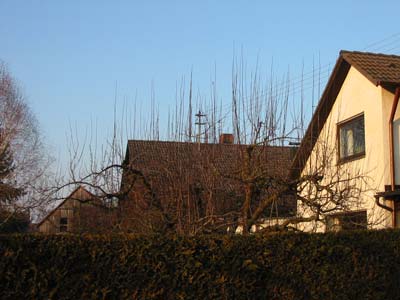 Sofern Obstbäume zu viel Sonnenlicht abbekommen, so können sie im Süden und Südwesten Strahlungsschäden bekommen. (vergl. Foto) Hiergegen hilft der so genannte Weißanstrich (vergl. Foto). Der Leimring hilft übrigens nur im November gegen den Frostspanner. Im Frühjahr sollten Leimringe unbedingt wieder abgenommen werden, da sonst Nützlinge darauf kleben bleiben, insbesondere die natürlichen Feinde von Läusen. |